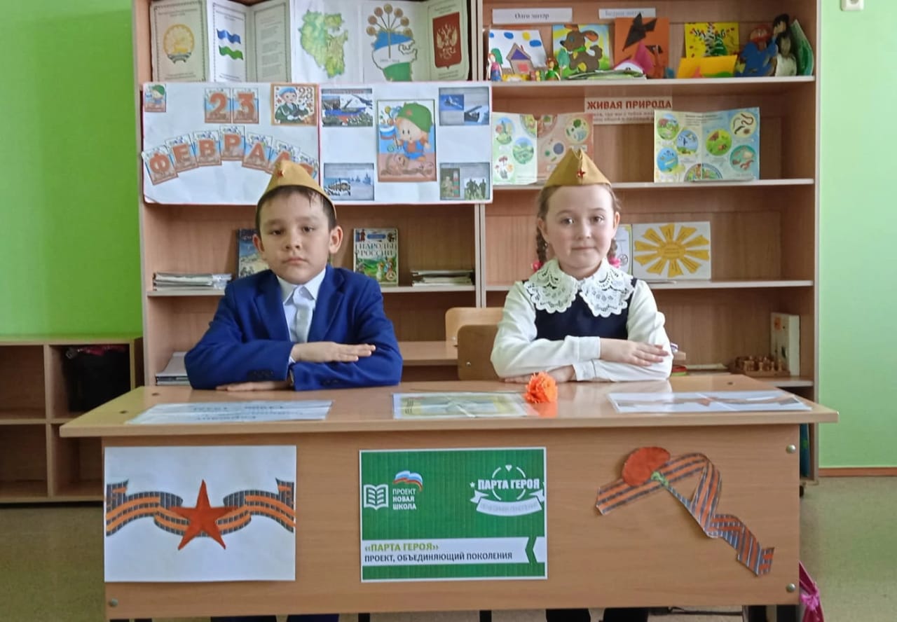 Хәрби-патриотик айлыҡ сиктәрендә һуғышта ҡатнашҡан, һәләк булған батырҙар хәтергә алына, уларға бағышлап дәрестәр үткәрелә. 2, 4 класс уҡыусылары ла"Герой Партаһы" акцияһына ҡушылып Һөйөндөҡов Ҡотдос Һибәт улына, Әлибаев Әҙеһәм Ғәле улына бағышланылар.