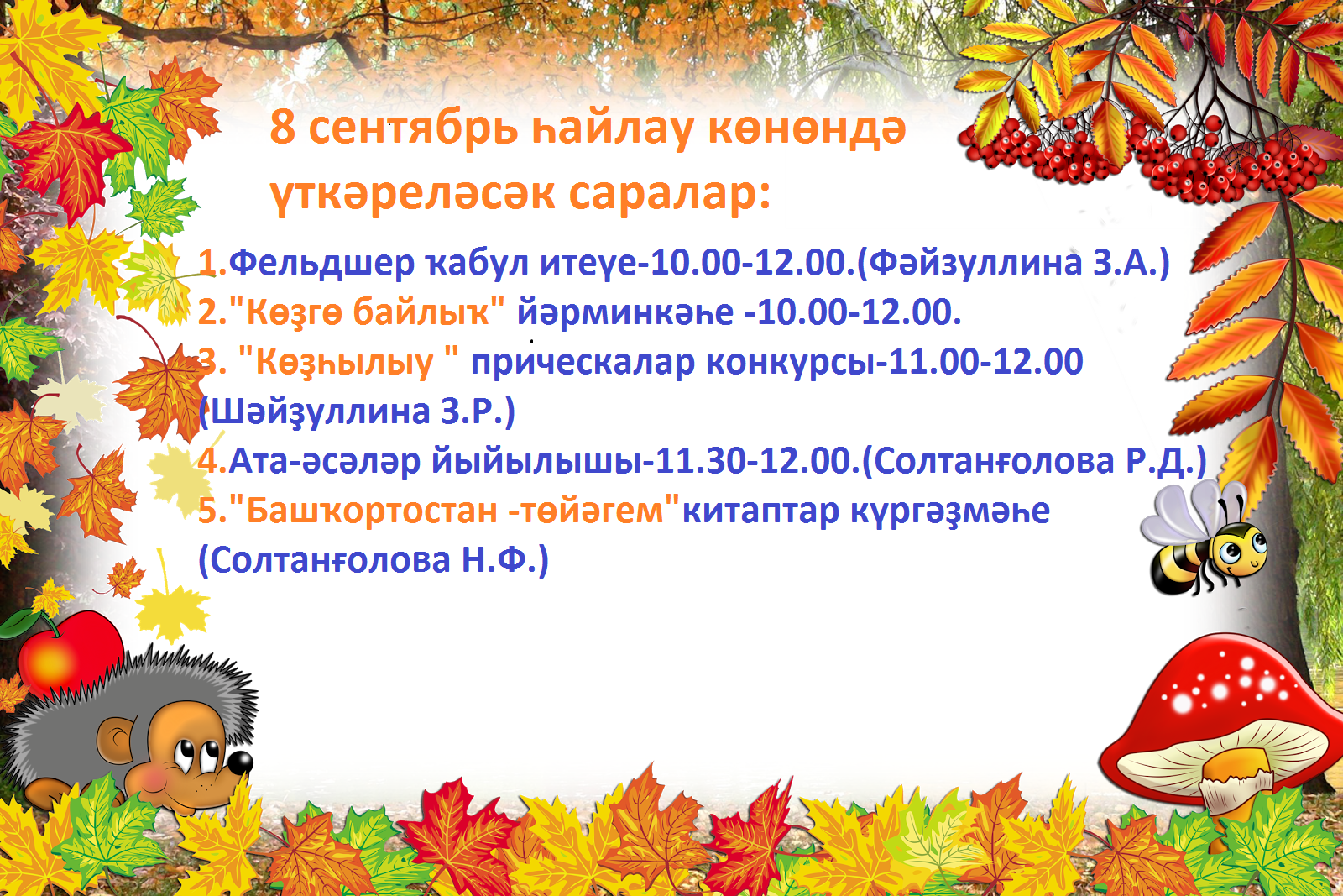 План мероприятий на 8 сентября