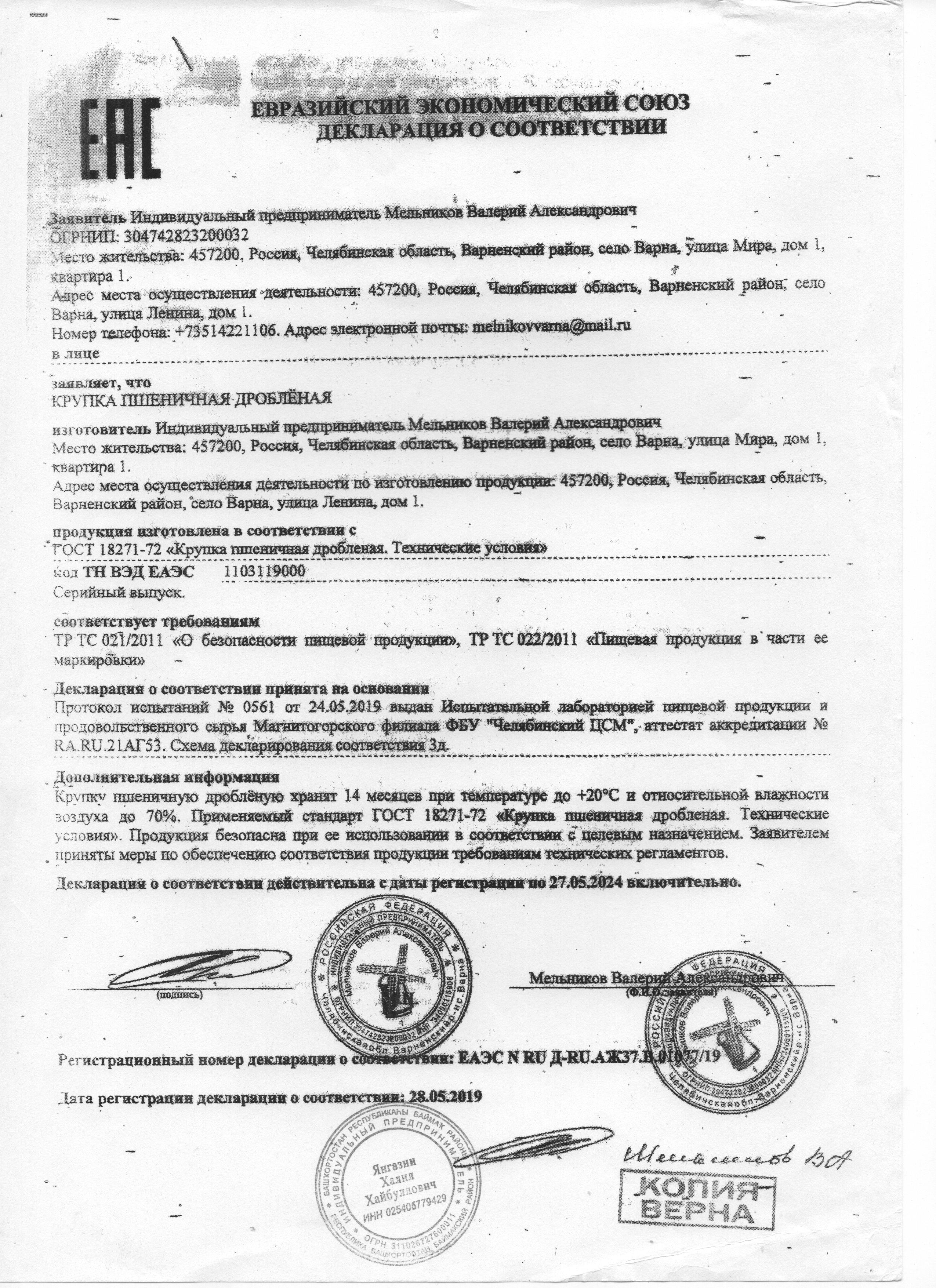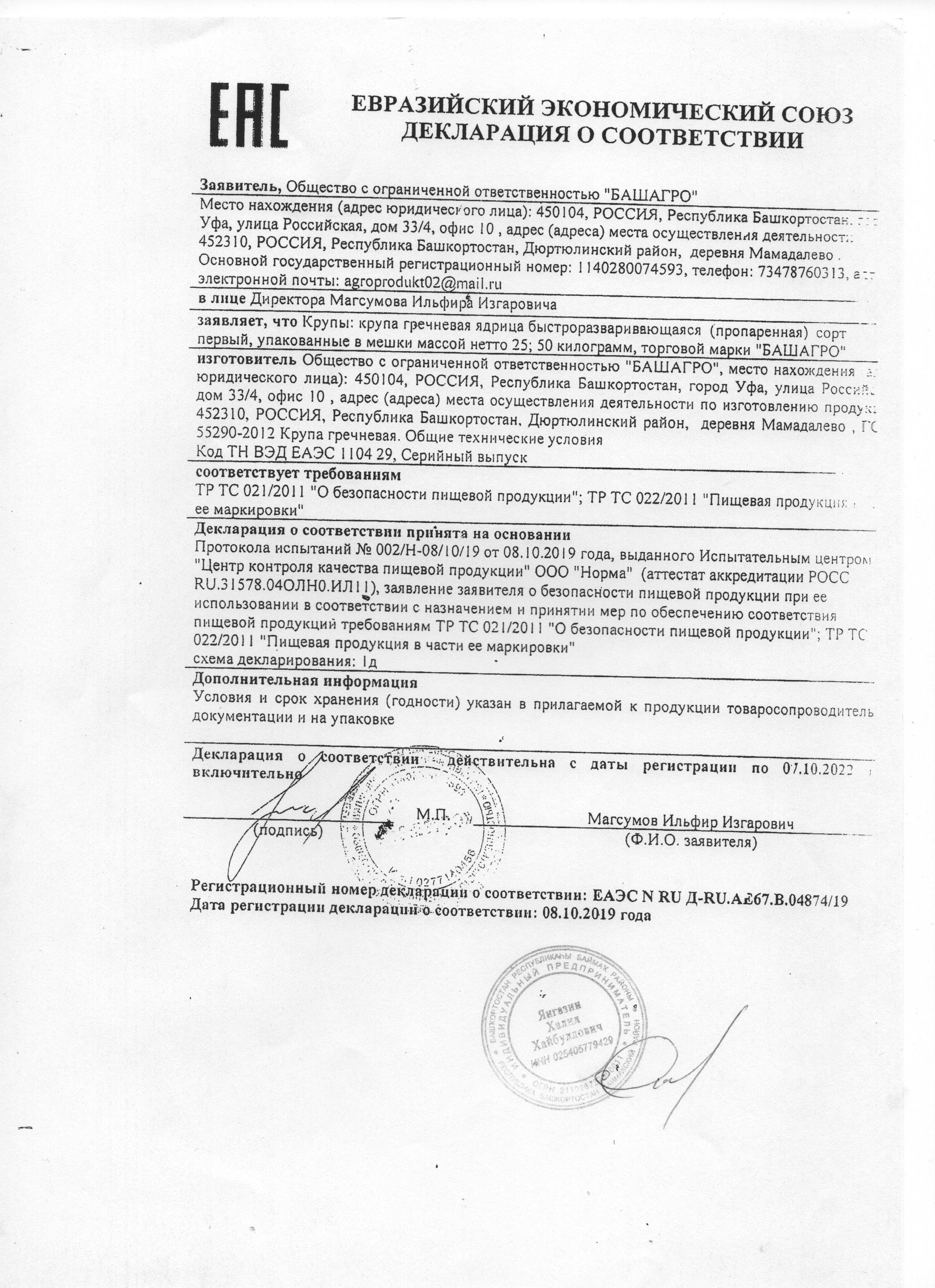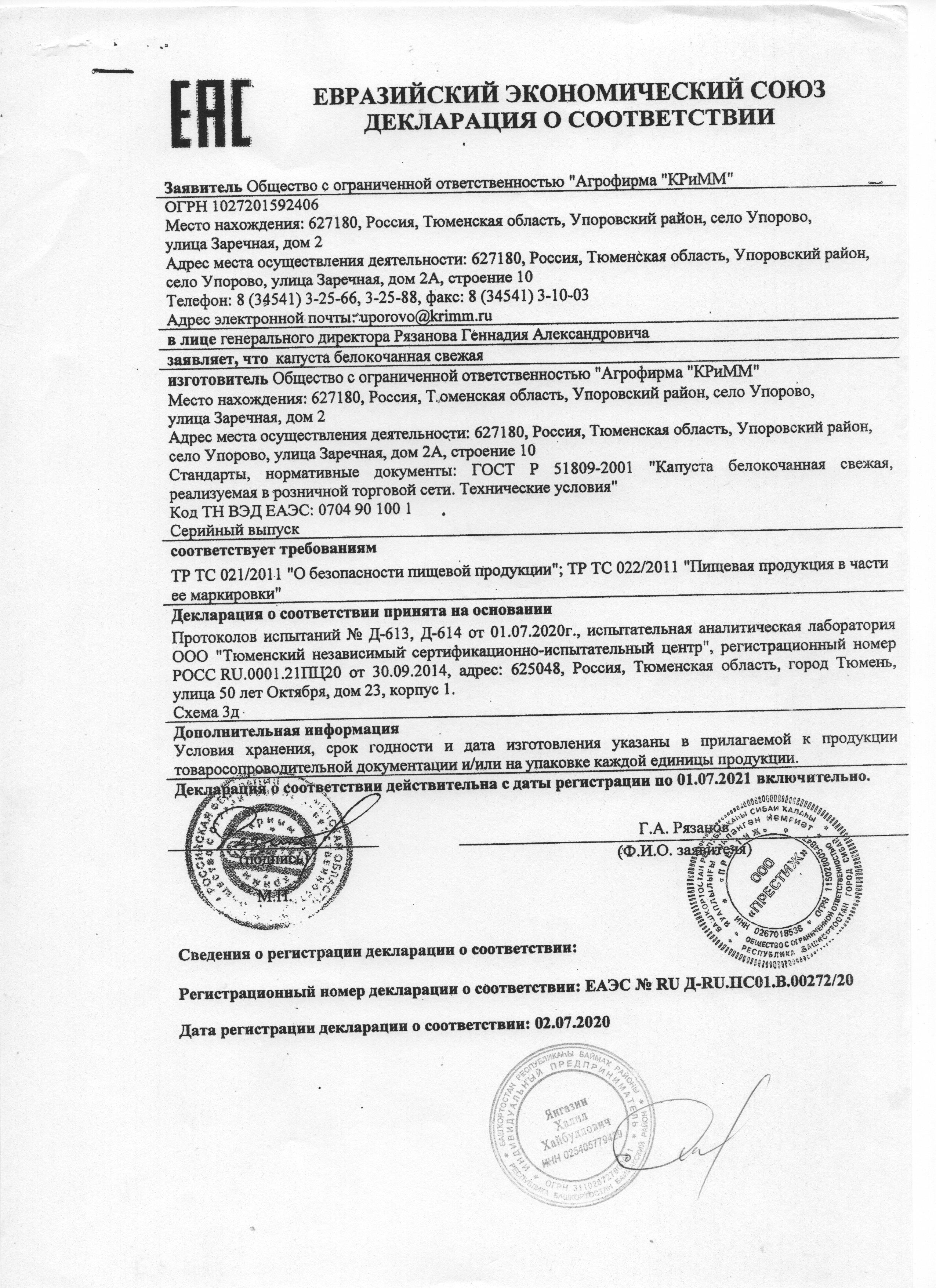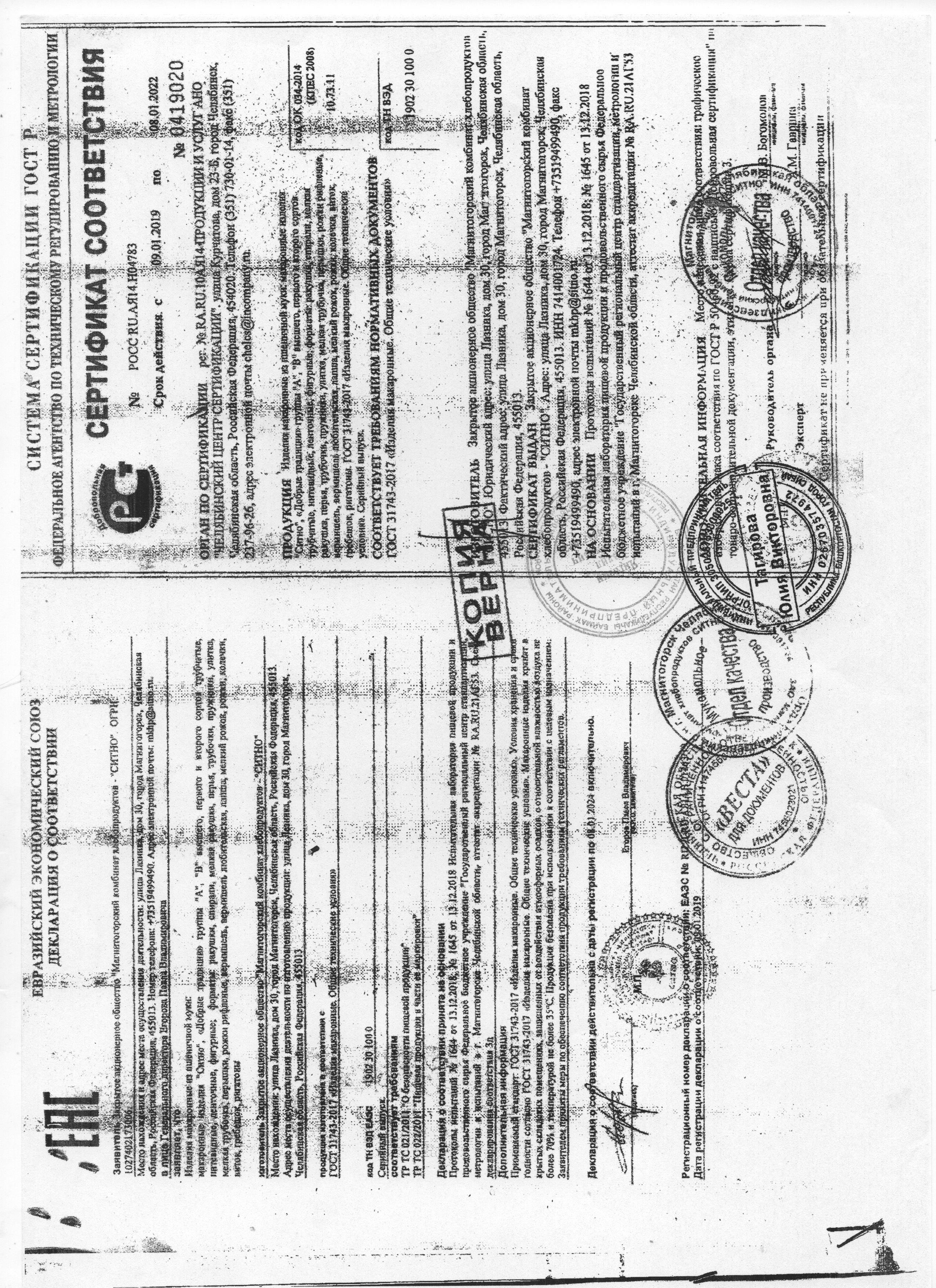 Сертификаты и декларации продуктов питания