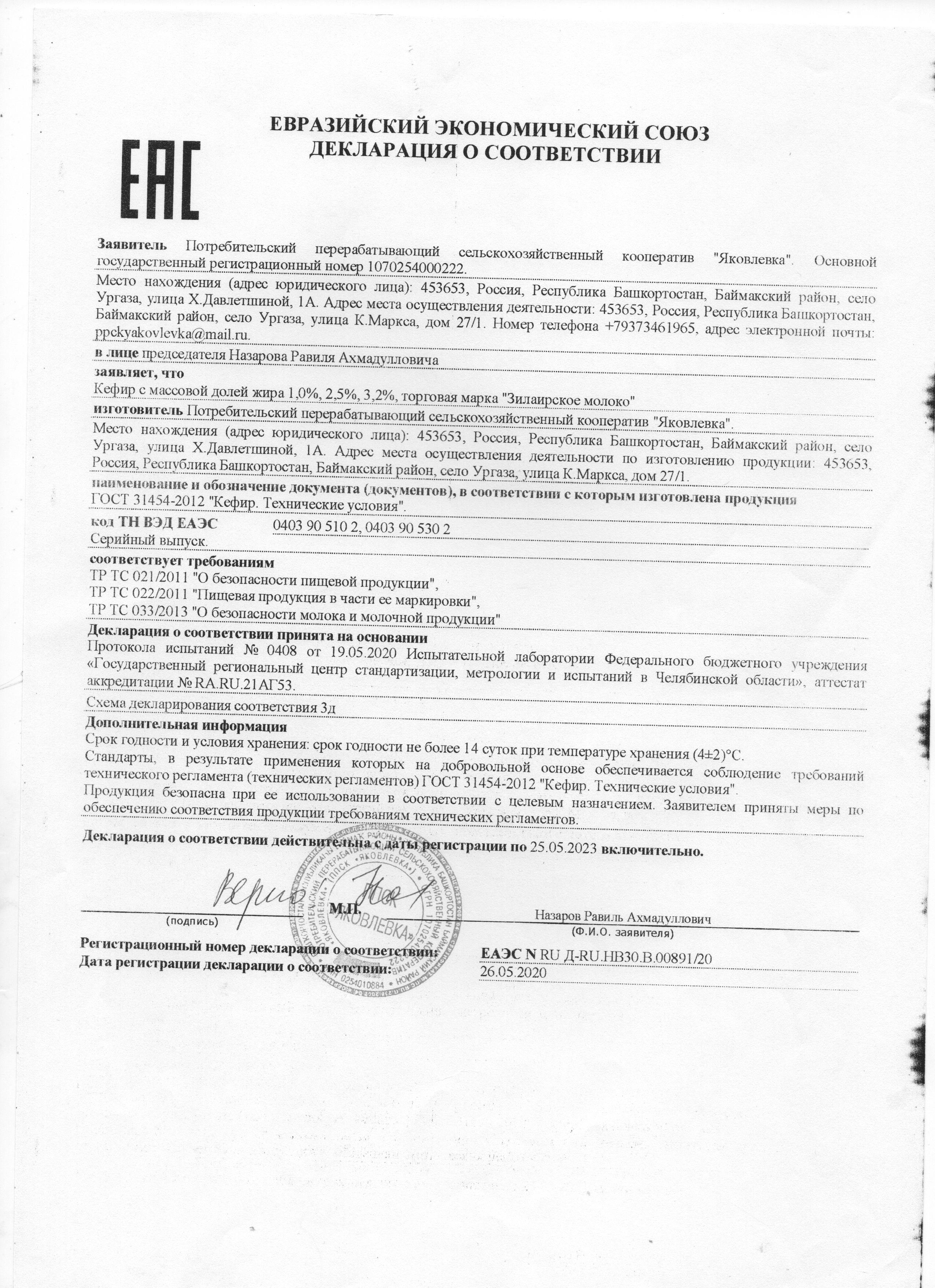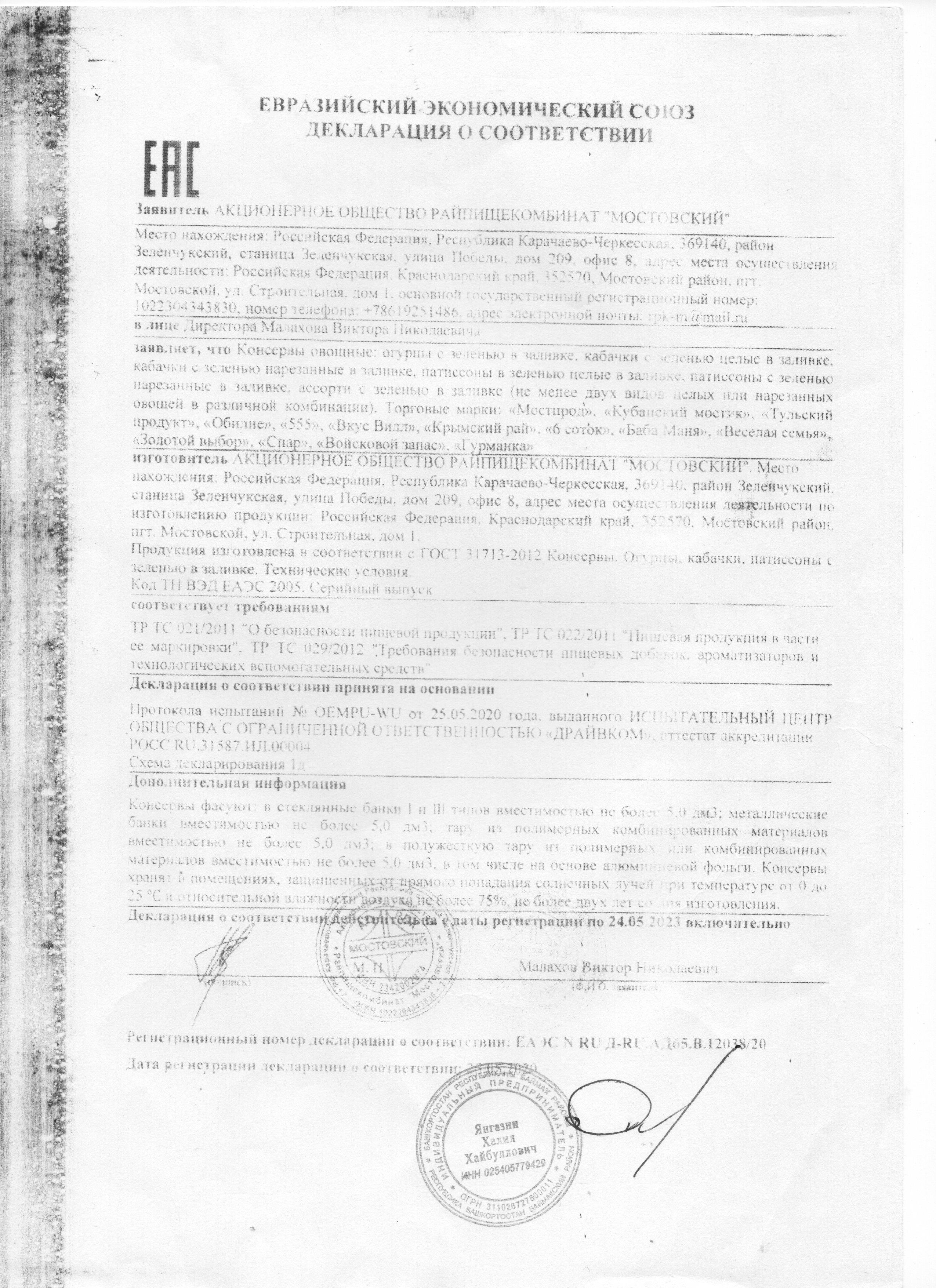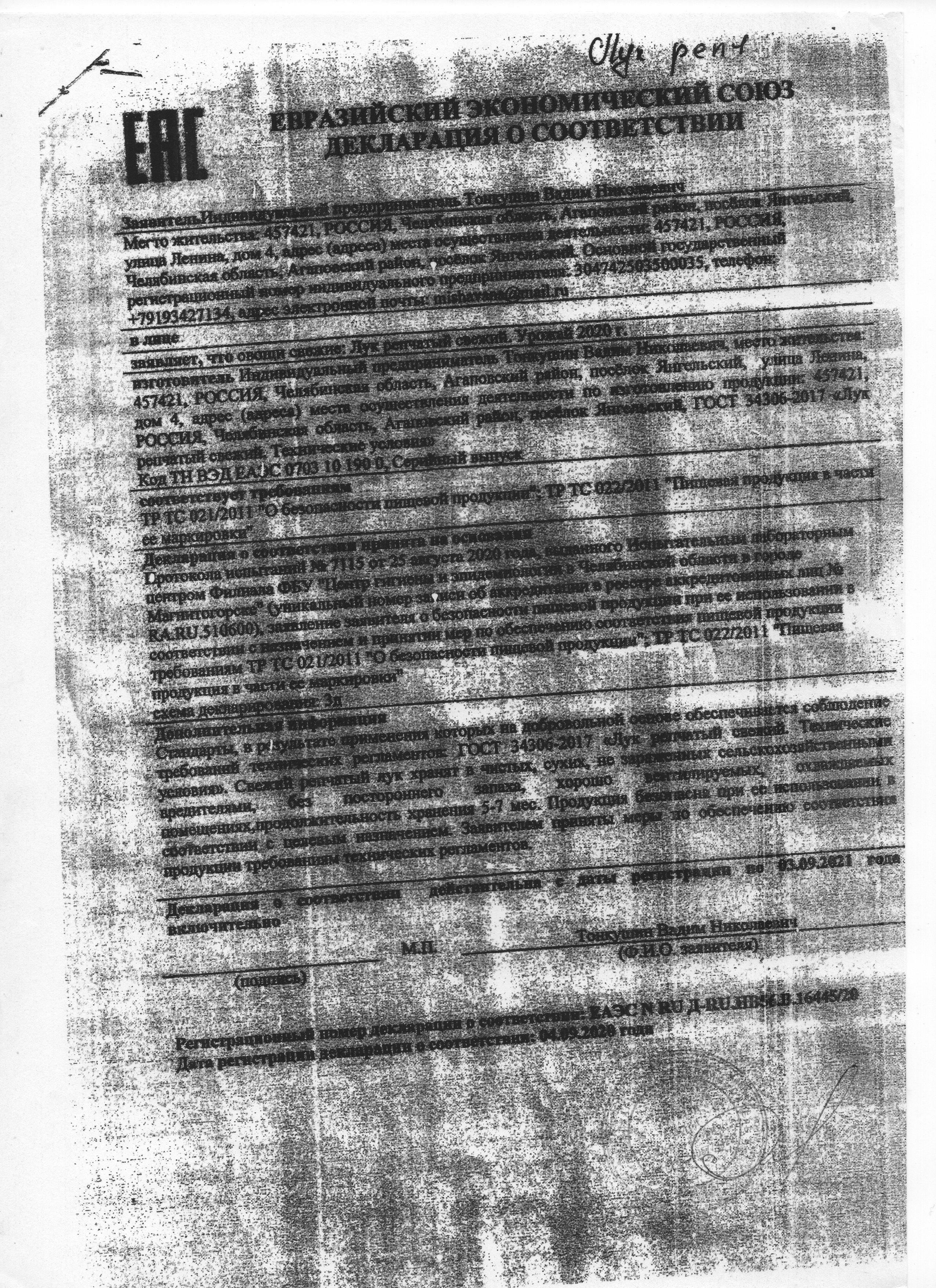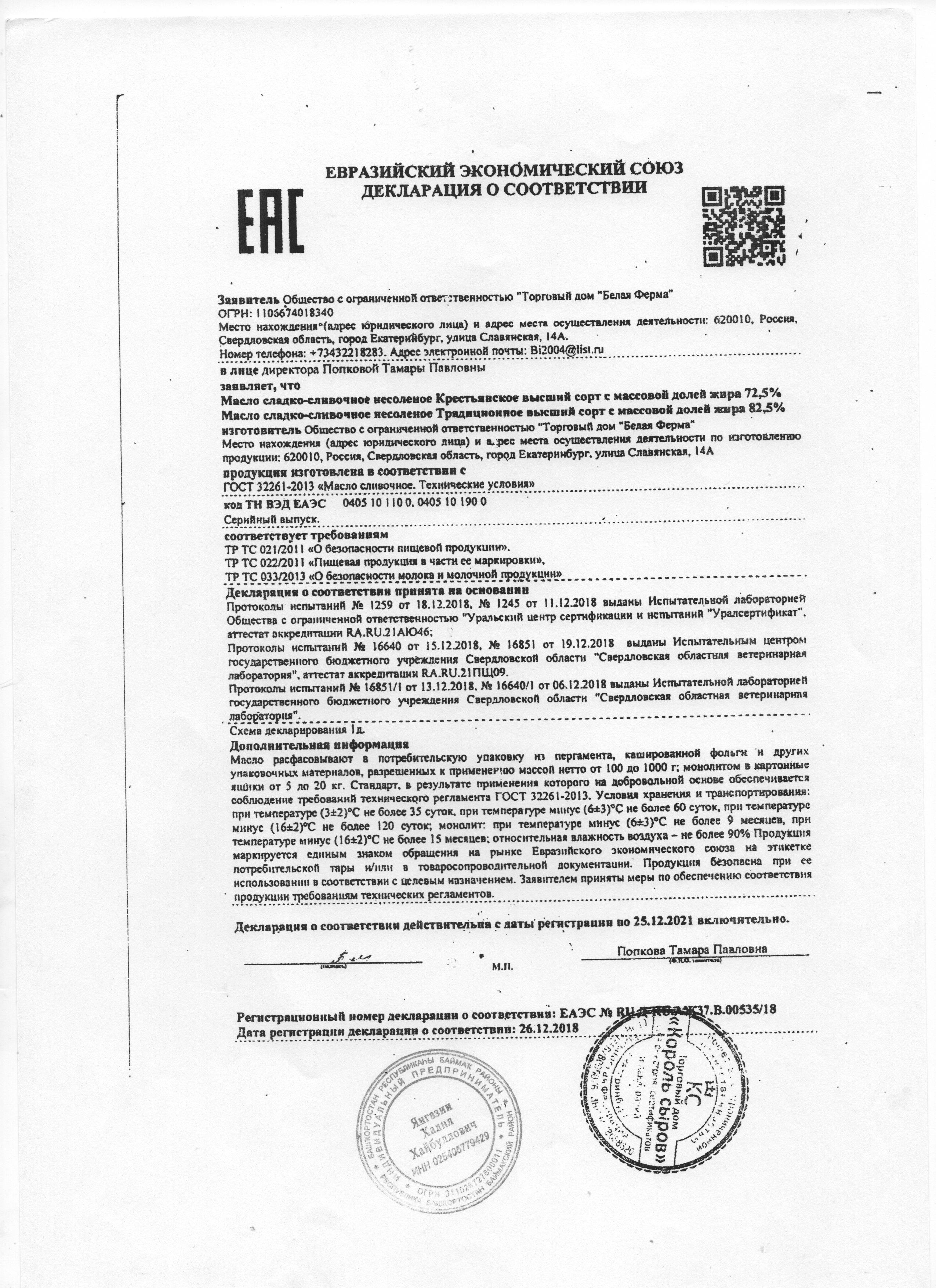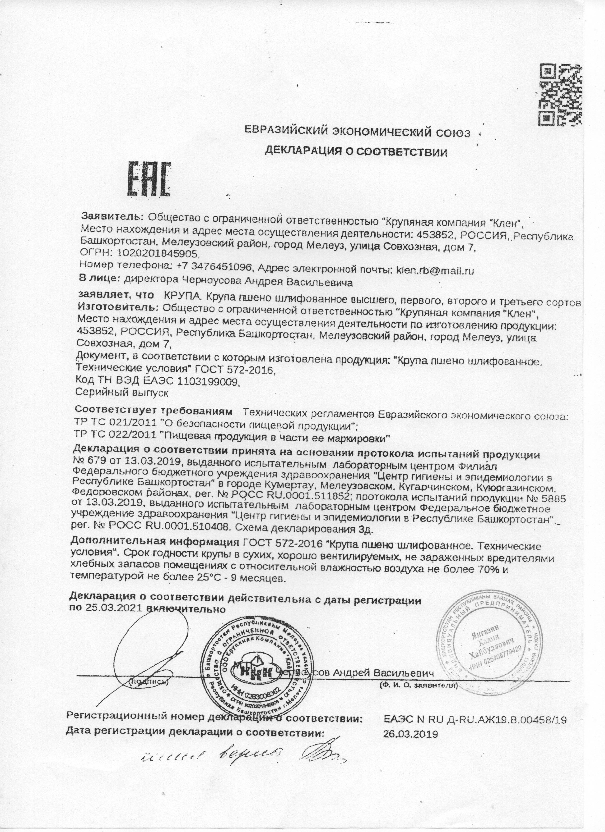 Сертификаты и декларации продуктов питания
