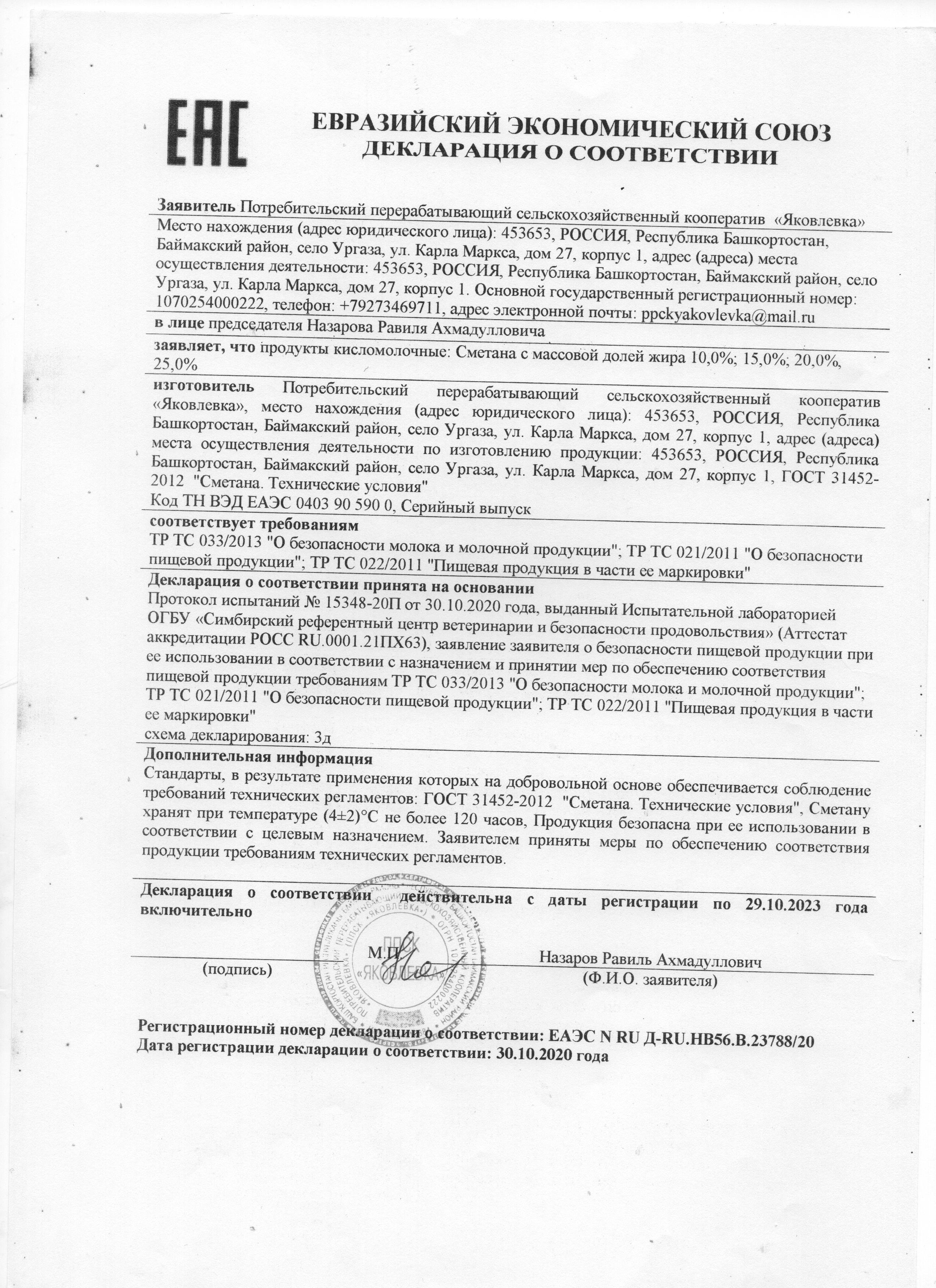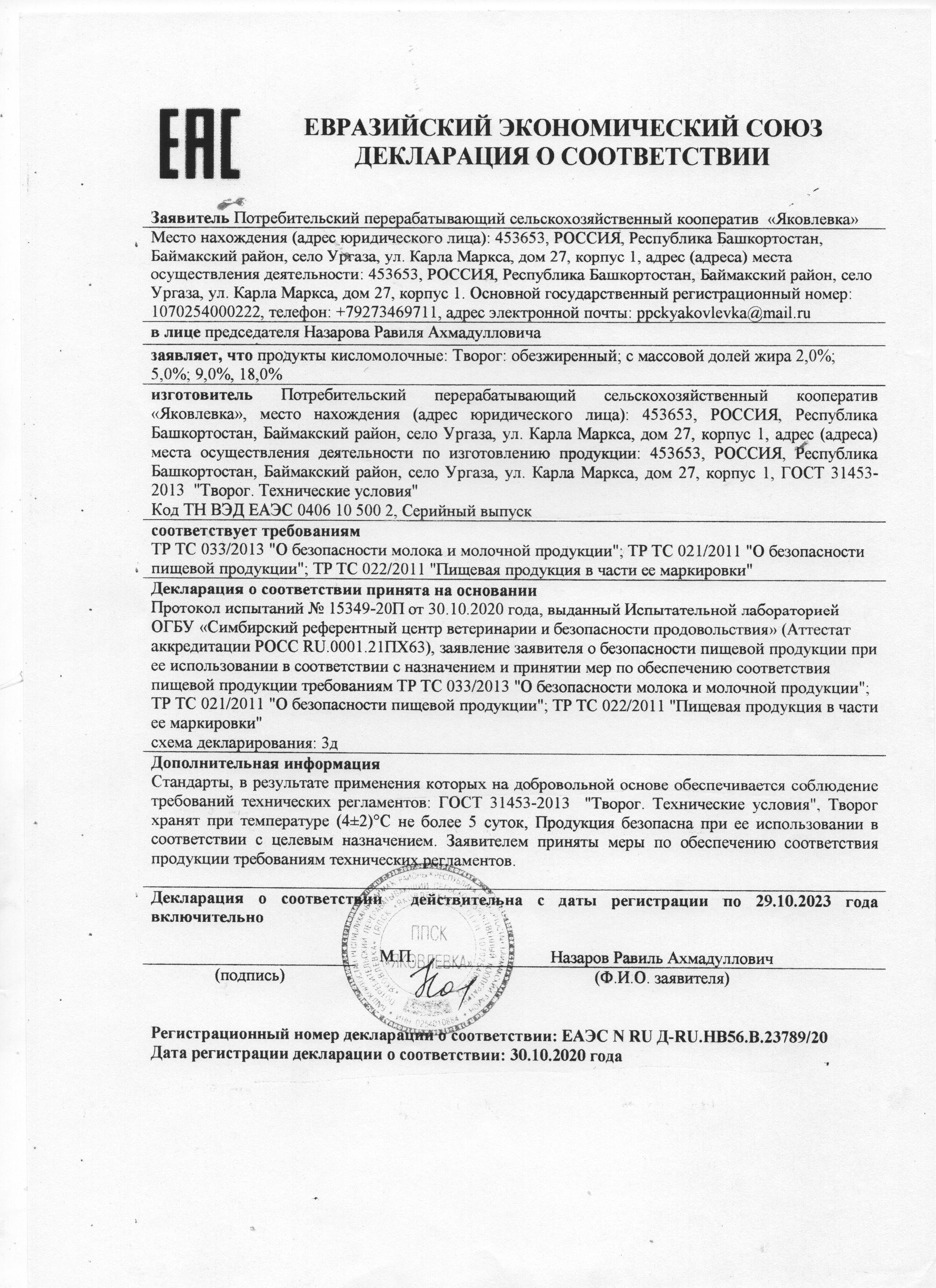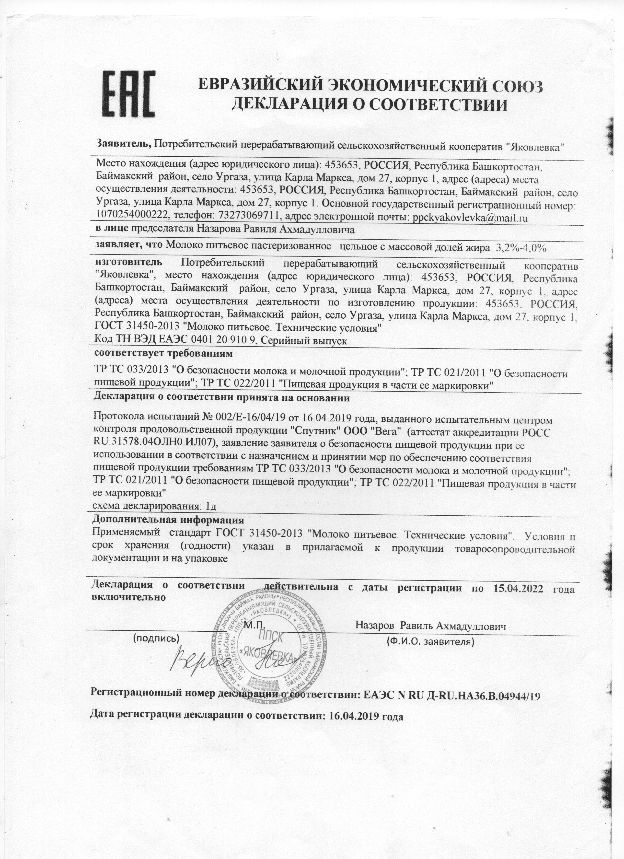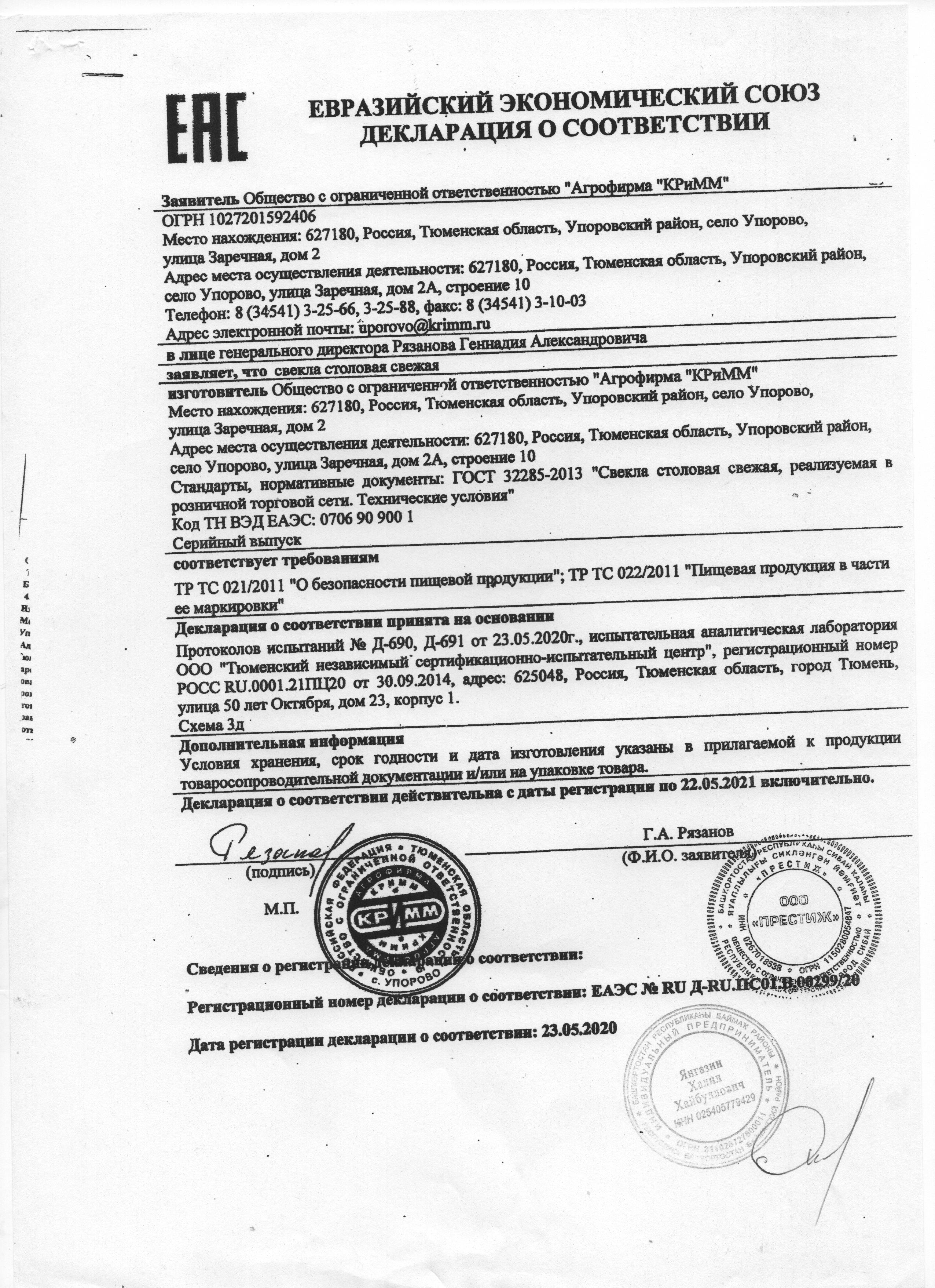 Сертификаты и декларации продуктов питания