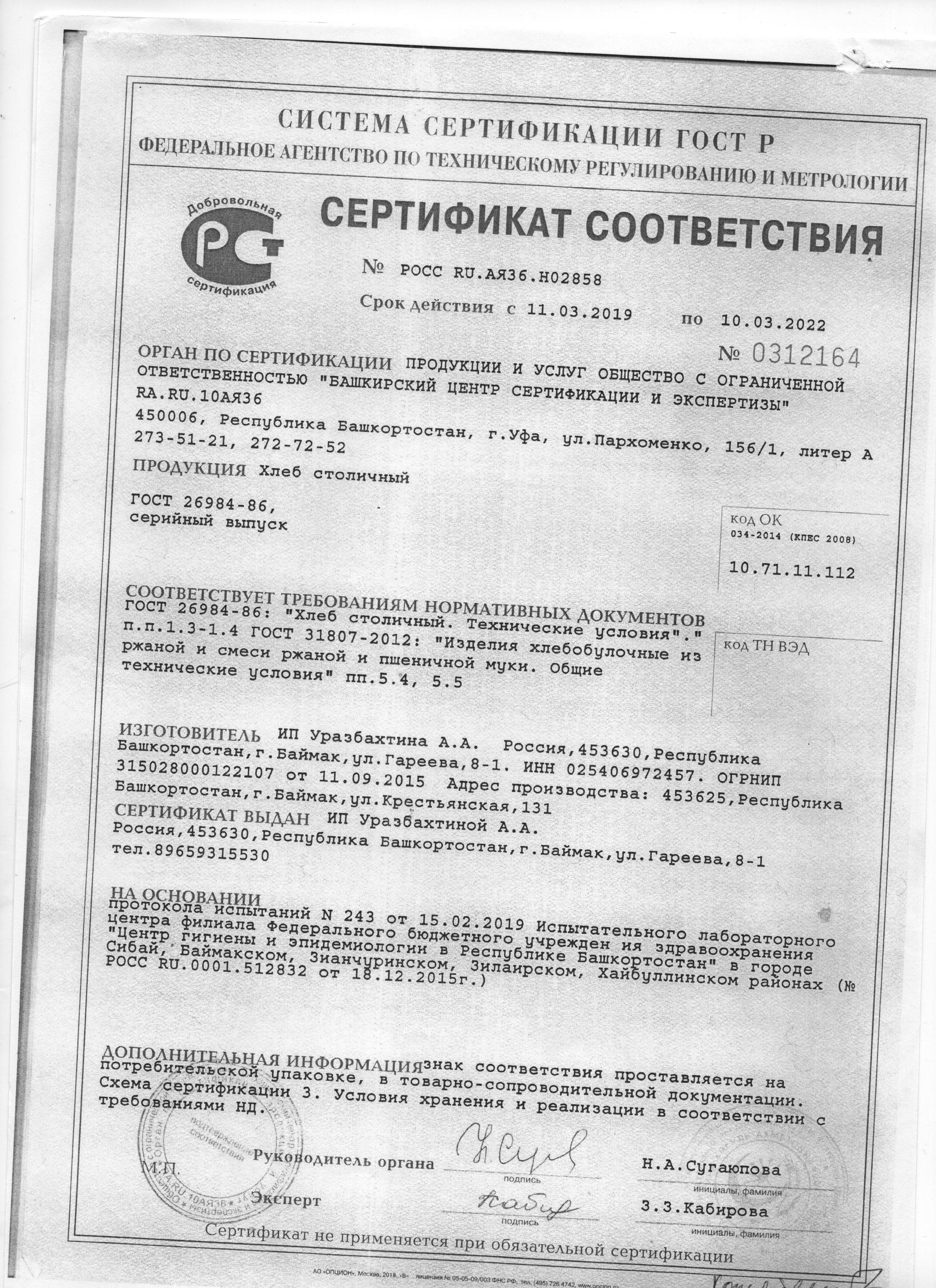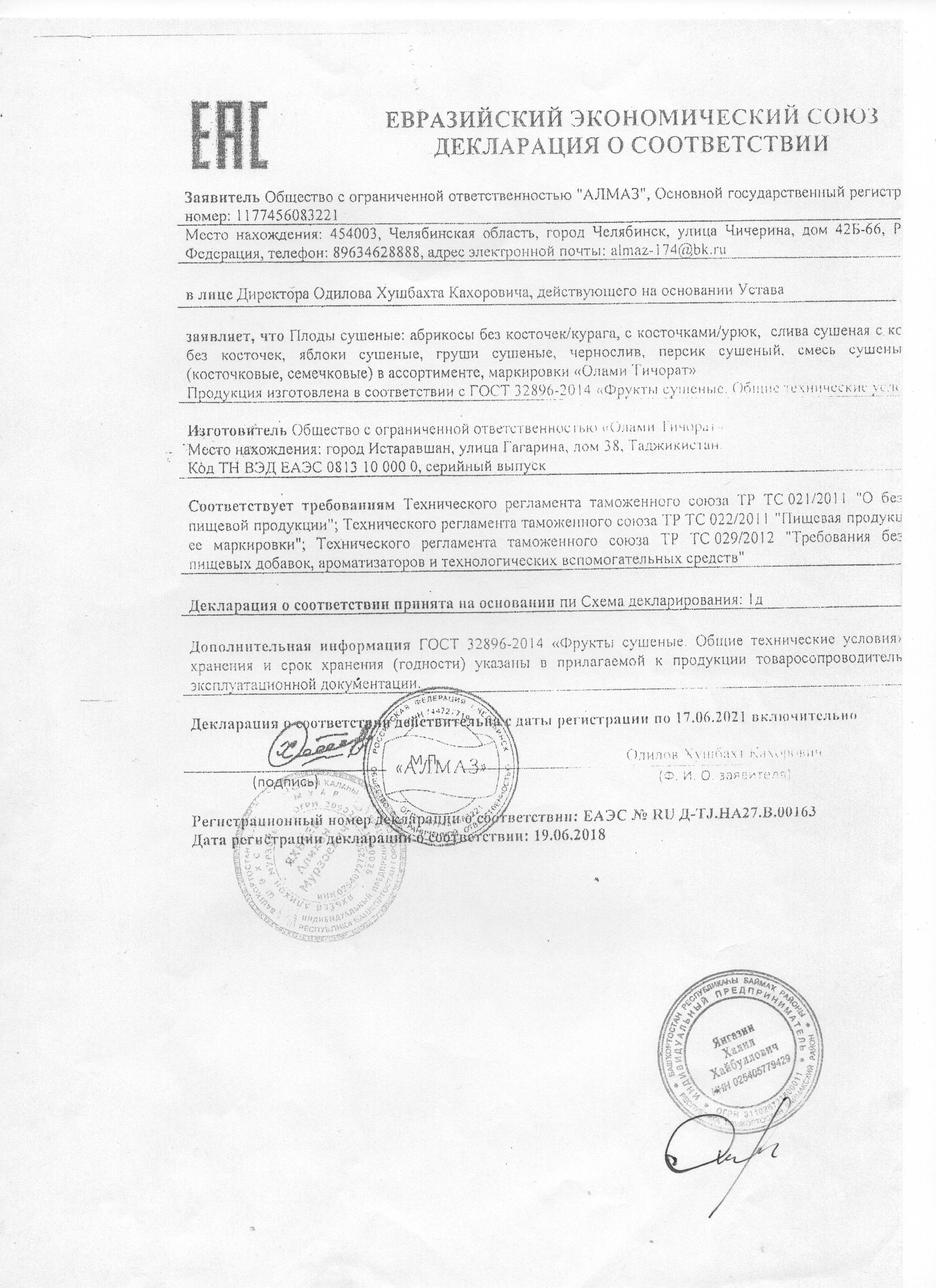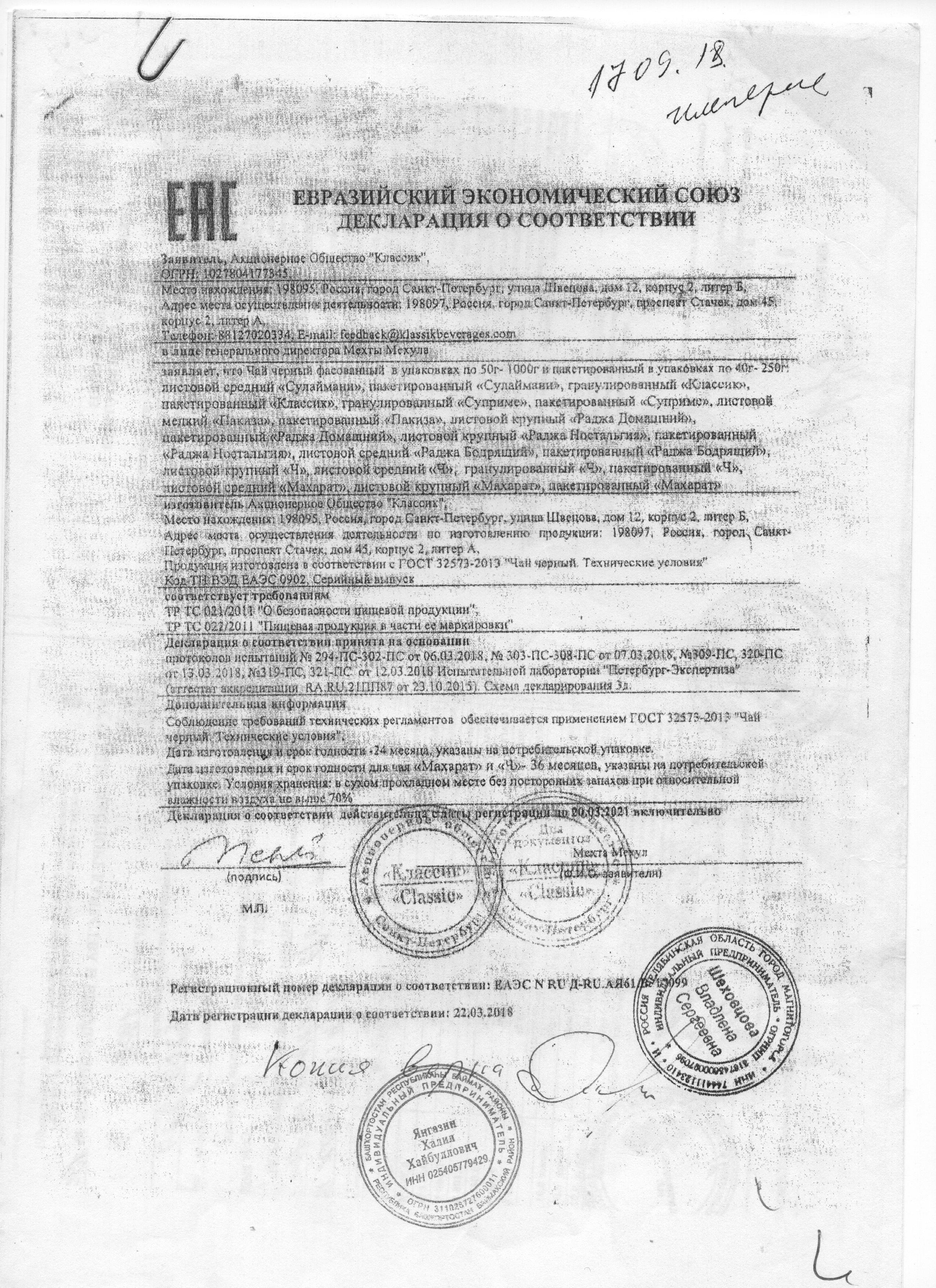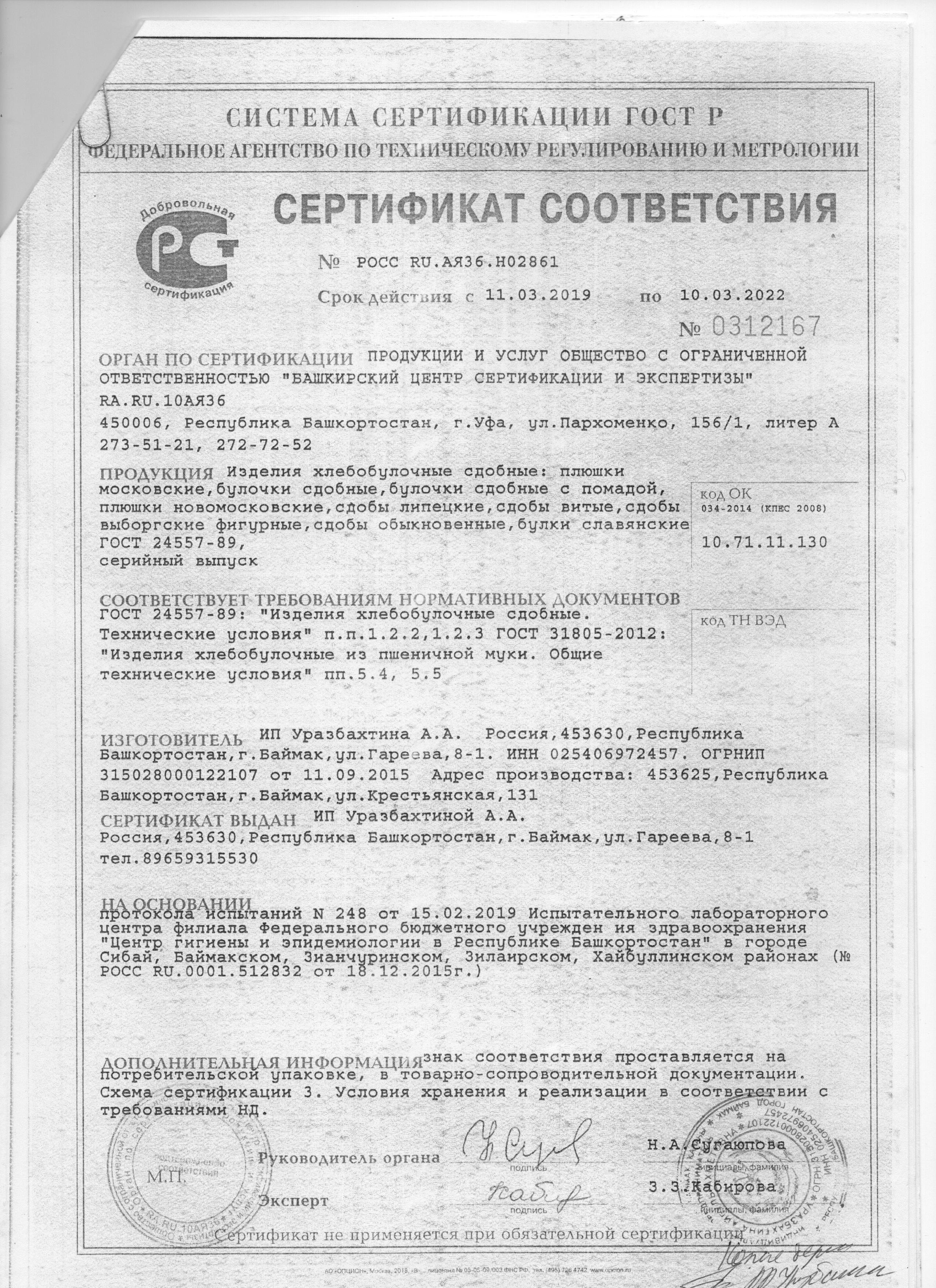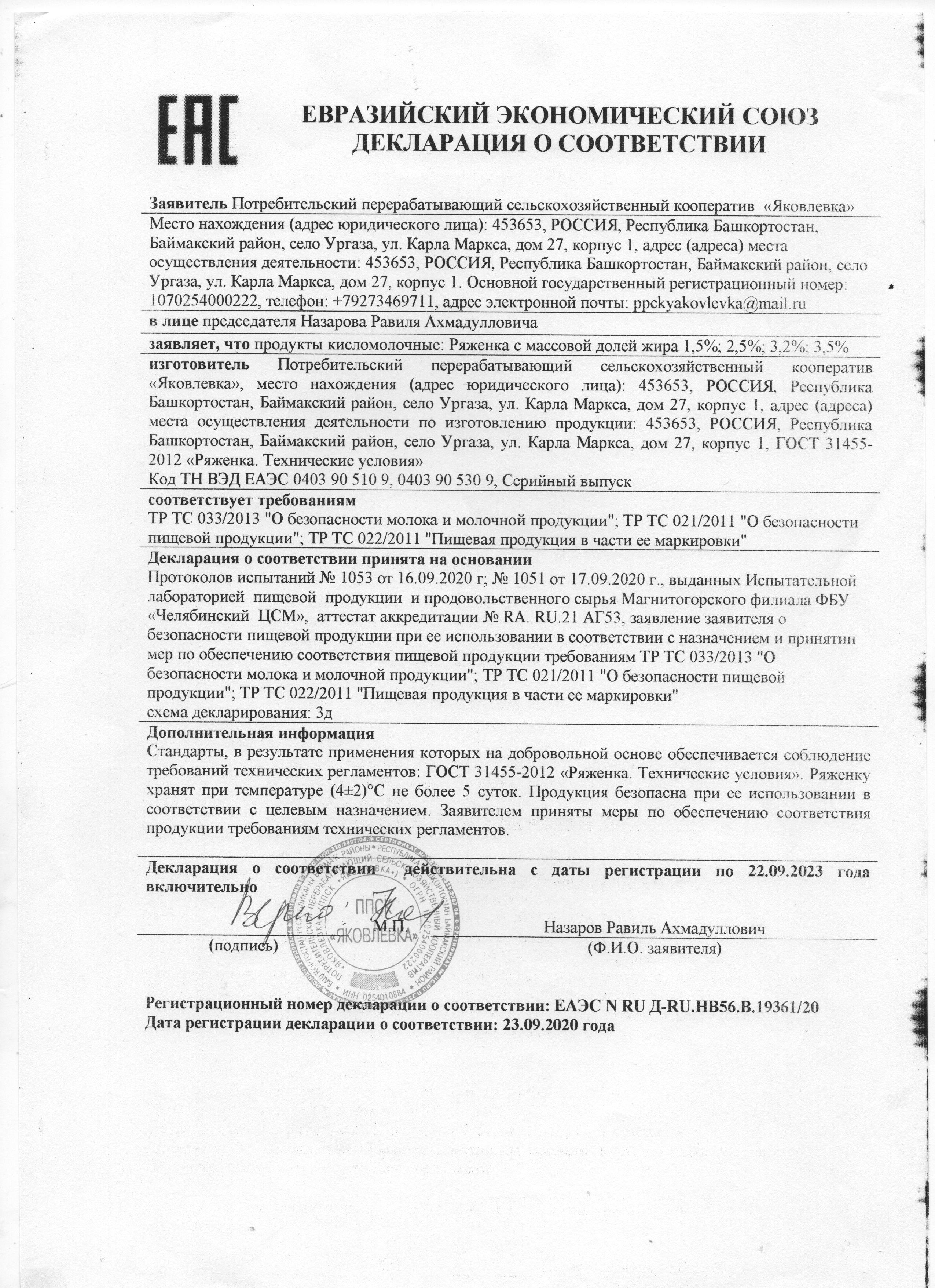 Сертификаты и декларации продуктов питания